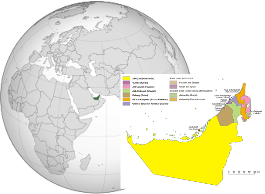 Abu Dhabi owns 75% of the territory, is the Capital, is the Federal government Centre with the Absolute Monarchy system.